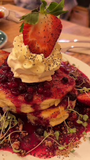 Read moreUnfortunately me and my friend were a bit disappointed by this place. We went there around 1pm hoping to eat the pancakes but then when we sat down they told us they didnt had any left.....Like whaaat? Its 1 oclock on a sunday and half the menu is pancakes! So that was very disappointing. Then we ordered something else, which tasted good but we wanted to add kimchi and guess what?; no kimchi either.. After that we still wanted something sweet so we ordered the banana bread, that was also very disappointing and just not a good flavour in general. It had some sort of peanutbutter cream on it which tasted very fake. I didn't even finish it and that says a lot. I want to add that the service was very friendly though so no complaints about that but the place definitely needs some better organising in terms of preparing food for a busy sunday. Also, while I was eating the banana bread I saw pancakes were served to people who arrived after us.. So that was very strange. Maybe they made a new batch or so but if I would have known I would have ordered the pancakes instead of the banabread because thats what we came for in the first...