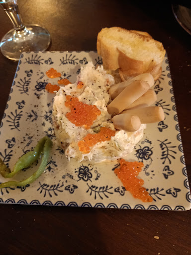 Centrándonos en la comida, pedimos las dos tapas más diferentes, y que más nos llamaron la atención. La primera que nos trajeron fue el Tartar de Fuet. Un tartar con un sabor a fuet más que logrado, que contenía en la parte superior del mismo una yema que le daba bastante cremosidad, y que estaba acompañado por unas rodajas de pan tostado. No se puede decir ni mucho menos que sea un plato espectacular, pero a pesar de que la textura estaba algo dura la verdad es que no estaba nada mal y por eso le doy una puntuación de...