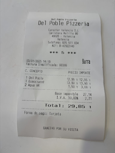 Read moreLa última vez no le di importancia , podría ser un error, pero cuando vuelves a pedir 2 pizzas, una de ellas sin algún ingrediente, y la tienen que volver a hacer porque le habían puesto ese ingrediente (igual que la otra vez) , pero mientras la Pizza que si que habían hecho bien se enfría y la tienen que recalentar. Si la misma situación se repite demuestra falta de interés en el negocio y las necesidades de los clientes. Si le sumas que te cobran 2€más por Pizza ( no de los extras sino de la Pizza que has pedido) de lo que ponía en la web, se lo comentas y le enseñas las capturas de pantalla y le intentas explicar que en la web sale con precios más bajos y en vez de interesarse por saber porque salían más bajos insisten en que si entras de tal manera los precios son los que ellos dicen sigue demostrando poco interés en solucionar problemas de tus clientes, porque si hubiese visto interés lo pagas y ya está pero al ver que poco le interesaba solucionar el error en la web/forma de acceso a la carta, pues Pago (como tenía pensado hacer si hay un error en los precios), pero también pongo una reseña explicando el desinterés por los clientes, sus necesidades y los...