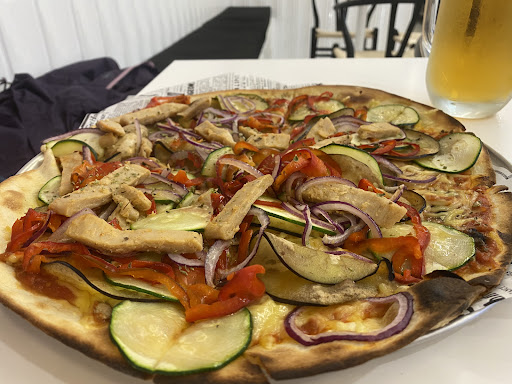 Read moreEs un lujo tener una pizzería nueva en el barrio, pero se queda corta. Primero NO tienen entrantes, así que o pides pizzas o nada. Me parece que tienen alguna empanada en vez de pizza y de postre cookie, pero nada más. Las pizzas son medianas, a una media de 8-10eu por pizza, masa fina, horno de leña. Pero son MUY lentos y tienes que gestionártelo todo tú, tipo fast food. Puedes llamar para encargar y pasar a recoger, pedir por glovo o ir. Si vas, pides en caja bebida y pizzas, te llevas la bebida y un aparatito que cuando se enciende y vibra significa que puedes pasar a por las pizzas, así que NO hay servicio de camareros. Es más tipo telepizza, una franquicia fast food, aunque lo disfracen de restaurante. Las pizzas no están mal, para probarlas, pero entre la lentitud y el servicio no se convertirá en un sitio habitual. Probé la de boniato y crema de cacahuete y la de boletus y trufa y me parecieron sosas y secas, a lo mejor otras están mejor, pero no sé, no me convenció mucho. Igual le doy una 2a oportunidad, pero de momento esto...
