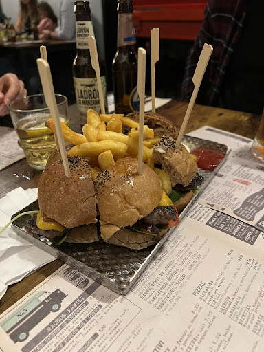 Read moreThe industrial design really makes this place special. It's very spacious, even if there's a crowd, you don't really feel uncomfortable. It is family- and kid-friendly, there is a big screen for La Liga and other sports, and they have a good beer selection as well. The food is being prepared in separate (open) kitchens which are foodtrucks basically, so the atmosphere is closer to a festival than a restaurant or a pub 😊 I'd recommend their roll called 'La Cabra Tira Al Monte' - one of the best burritos I've ever had. The waitresses and waiters are also great. Two important details: 1) they use whatsapp for ordering so you have to add them upon arrival and always send them what you want 2) kitchens open at 19:30 (at least they did...