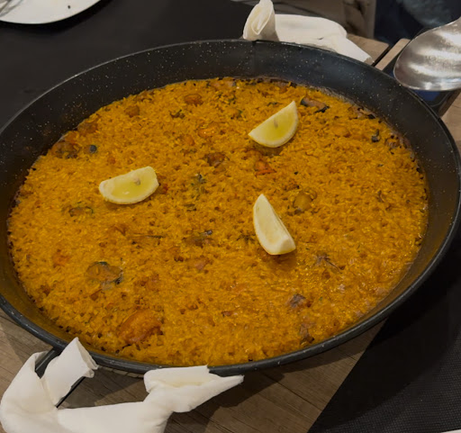 Came here with expectations, probably this was the base of the issue. It took several minutes for the waiter to hand us the menu – although other people came after us and they got welcomed and seated. We did not even get the menus when those people were already sipping their dirnks and eating their Paella. At some point we received the menus, but spend other 7-8 minutes waiting for the waiter to take our order. Finally, after maybe 10-13 minutes, our paella came (we did not mind waiting for the food, we minded waiting for the waiter to treat us like customers). He basically threw the hot Paella pan onto the side of the table and left without even saying “enjoy” – like a decent waiter would do. I think the rating is inaccurate. It is also confusing because El Paeller and La Terazza share the same terrace - you receive two menus, so it is basically the same service but different locations (weird). Anyway, wish I ordered a pizza. At least it would not have been that disappointing. Their Paella is not incredible. Addionally, THEIR FORCE YOU TO ORDER FOR TWO PEOPLE (16.5€ each - Verduras), BUT THE PORTION IS QUITE SMALL IF YOU ARE HUNGRY. Do not get scammed. You basically pay for one portion, but end up paying somewhere over 30€ - it is not worth it, trust me. I do believe you can find better deals for Paella in Valencia.