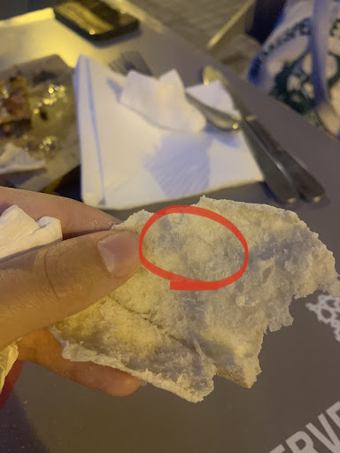 Hummus was delish. Pita was good until I found a hair in the dough, so I gave them the benefit of the doubt and just ate around it.. I kept checking the other pieces of pita to make sure there was no hair but yet another piece of hair was found in the SAME piece of pita!! Photos attached.