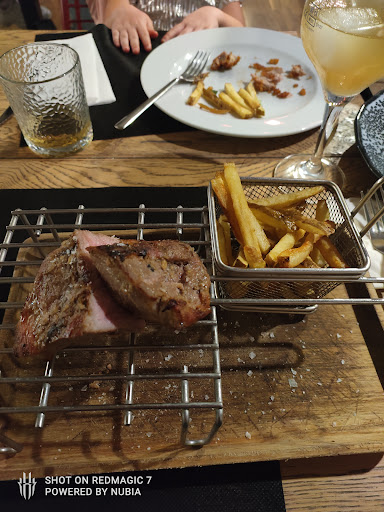 Read moreNo point to say which food I ordered, the portions are all the same and are shamefully small. Also to point out, NO ENGLISH MENU AT ALL. It isn't a gourmet restaurant or holds a michelin star. It's a grill. A small piece of shoulder pork, 14€, unseasoned half portion of fries, 5€. The pork tasted good but came almost cold. Not a kid friendly place either. The dishes should never cost as much as they do. And do never order the T bone steak, the bone weights 700g and there's maybe 150-200g of meat on it, for the price of 90€, NO SIDE. You have to buy side for extra. So your paying 14-90, just for a hunk of meat with nothing to accommodate it without paying extra . Toilets are also terrible. Bin next to the seat up, reaching to your size so you smell real good those wastes, and no seat to sit on. And they smell awfull . Passed by the kitchen on the way aswell, and door was left open, the inside was quite messy and dirty, and for a place that charges these prices, it should be shinning, so sanitary wise, they are also way off.