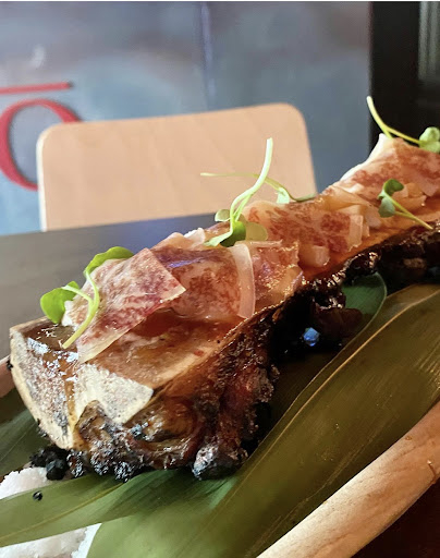 1- Usuzukuri de Hamachi kobujimi (12,50€). Sutil y sedoso, una auténtica delicia. 2- Espárrago blanco a la brasa (14€) con cecina de Wagyu y gambas. Un puro espectáculo. 3- Pambao de costilla teriyaki (7€). Impecable, muy sabroso. 4- Tuetano de ternera a la brasa (18€) con tartar de vieira y cecina de Wagyu. Este plato recientemente incorporado es la p…. locura. !brutal!brutal!. 5- Mollejas de ternera al Kamado (14€). Pura mantequilla. Tremendas. 6- Entrecot de auténtico buey japonés de Wagyu (34€/100g.). Yo soy más de carnes maduradas e intensas, pero es una gran experiencia darse este homenaje. Tierna y sabrosa. Hay que probarla.
