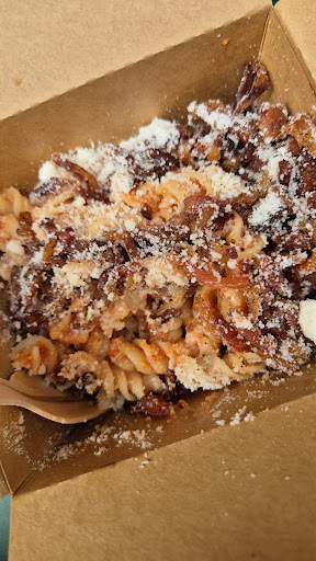 Each pasta - which rotates daily - is handmade and fresh each day. Their sauces are also made with authentic Italian ingredients and recipes. They can also adjust many for vegans/vegetarians!