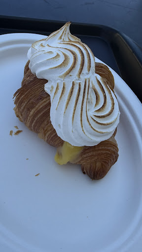 Read moreBusy pastry shop with lots of croissants, cookies, cheesecake, other sweets, Pizza and more—vegetarian options available. I tried the lemon curd croissant: too much curd and meringue, with a sugar topping that made it messy and unpleasant to eat. The tea (sugar pearls in water) was overly sweet and overpriced. Overall, I found everything too sweet—even you expecting sweet food and drinks. Prices felt a bit high for the quality. The food also served on a paper Plate.