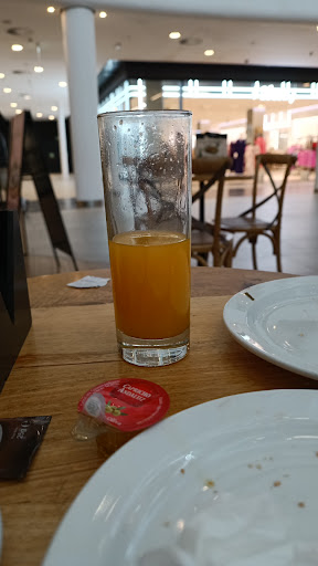 Completamente nefasto, llegamos a las 12:45, tienen 3 mesas contadas ocupadas, encima es autoservicio, para el colmo esperamos más de 15 min en la cola y solo teníamos dos personas más delante, para que el me dijeran que el desayuno no estaba ya que ya era la 13:00, habiendo llegado a menos cuarto, las dos camareras no están trabajando, están ahí por estar, he visto lugares con más gente y menos camareros siendo más eficaces y rápidos, pero hay cero ganas de trabajo, y esfuerzo, a pesar de que no hay gente. El servicio encima de mala gana, me dicen que el desayuno no está, vale, me pido un almuerzo y un bombón, para el colmo el bombón tampoco está incluido por 4 euros, bueno, no pasa nada. Pido un zumo de naranja y un bombón y tostadas a parte, tostadas nefastas, el pan es cartón, y el tomate parece que sea de varios días no es ni rojo, si no blanco ya, el zumo de naranja con naranja que no tiene sabor, no es naranja de valencia y a saber si de España. Y casi 12 euros por café, zumo malo, y dos de tostadas con tomate de varios días, 0 servicio porque es autoservicio, 0 atención al cliente, una haciendo otras cosas como reordenar vasos mientras la otra estaba con el móvil, habiendo una fila de gente esperando y todas las mesas vacías, indignante, las dos empleadas, porque camareras no se les puede llamar. He aquí la foto de un zumo de 3 euros casi que nos lo hemos dejado tal como la foto, porque era imbebible. Consejo, mejoren la calidad del servicio, el servicio y de...