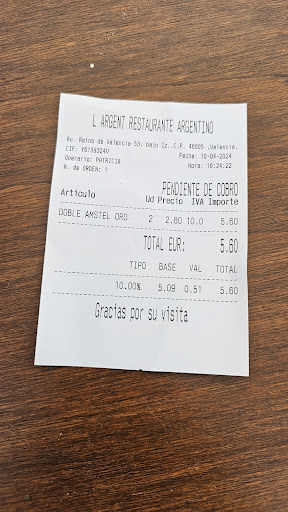 I recently dined at Restaurant L’Argent in Valencia and had ribs with potatoes. The service was very kind and quick, which made for a pleasant dining experience. The ambiance was fine, though nothing particularly remarkable.