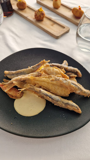 Our food: Tomate Pelado (Tomato and Anchovies Salad) Pescaditos de la lonja en fritura (Fried Anchovies) Bravisimas NOTE: When they’ve asked you for bread - it’s not for free, you’re also going to pay for that.