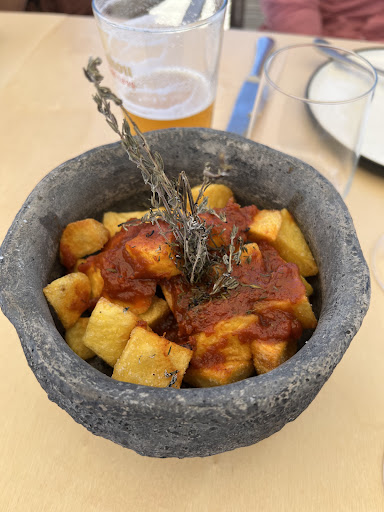 Read moreTeníamos la reserva a las 21:15, nos sentamos un poco antes porque ya estábamos por allí, nos sentamos y tardan un rato en tomarnos nota de las bebidas pedido un agua y una jarra sangría, tardaron en traérnoslo 30 minutos, después ya de traernos la bebida y estar esperando un buen rato, es la hora de pedir le decimos a la chica que se llamaba Sheila si nos podía tomar nota y su respuesta es que le habían dado el alto y no podían tomar más mesas perfecto esperamos aparece el encargado por la zona y empieza a mandar a los camareros que tomen nota a ciertas mesas… lo que me sorprendía es que las mesas a las cuales tomaba nota era mesas que habían venido más tarde que nosotros, total que llamo al encargado y manda a Sheila que nos tome nota cuanto antes, nos toma nota pedimos pan con alioli, ensaladilla, torrezno, chuletas y mollejas a todo esto le pregunto que en la carta había un plato que era pescado del día le pregunto cuál era y su respuesta es no lo sé . Tardan 20 minutos en traernos el primer plato lo primero que nos traen es el torrezno, ( sin traernos ni la ensaladilla ni el pan con alioli para ir picando ) cuando nos traen el torrezno mi respuesta es rápida es decirle porfavor me traes el pan que es para comerlo con el torrezno que se enfría. Nos tocó irlo comiendo más que nada porque se está enfriando y ya nos lo estábamos acabando lo vemos a aparecer con el pan y el alioli. Nos lo acabamos y esperamos a que nos traigan lo demás es de decir la ensaladilla que es frío y lo deberían haber traído lo primero…. Vemos que nos aparece a los 25 minutos, el camarero con las chuletas, mi respuesta es dile a quien le tengas que decir que ya no marche ni la ensaladilla … porque nos estaban sacando los platos cuando aún faltaban los entrantes me parece increíble, ya un poco enfadada me traen el plato. de las chuletas el cual ahora pongo la foto el plato no era chuletas con guarnición patatas era patatas con guarnición chuletitas , no tenían carne solo el plato tenía patatas, ya me levantado y voy a hablar con el encargado le cuento todo lo que había pasado y su respuesta es, vale no te preocupes te cobro solo lo que os habéis tomado, no le importo sin duda nada. Cuando teníamos muchas mesas alrededor que les había pasado lo mismo que q nosotros y se iban sin cenar. A todo esto nos habíamos sentado a las 21 y nos levantamos del restaurante solamente cenando pan con alioli y torrezno a las 22:50, fastidiando nuestra noche de aniversario, yendo a este sitio. Luego vinieron alguno camareros a disculparse y a dar la cara por su equipo, Se llama Sheila ( al principio la vimos un poco perdida al sentarnos en la mesa pero luego sin duda supo solventar todos los problemas que estaba teniendo en todas las mesas y vino a disculparse y calmarnos, luego vino un chico de rizos creo que era rubio que sin duda también muy majo, nos estuvo hablando con nosotros, y explicando todo y nos dejó hablar y comentarle todo, sin duda algunos camareros genial, pero cocina… y el encargado nefasto Trabajadores, como uno de vosotros bien me dijo yo doy la cara por mi equipo. Mi respuesta , es no des la cara por tu equipo, cuando vuestro propio encargado/jefe no la da. Tambien había una chica joven que tomaba las reservas increíble muy buena imagen , y nos estuvo ayudando en todo momento, estaba atenta a la hora que nos pasó todo sin duda de las mejores que ahi en el sitio, problema que creo que nos comentó que solo estaba para verano. Asi que es espero el de rizos y Sheila, aguanten más que solamente para Verano. La cuenta nos costó 32,70 € una jarra , agua torrezno y...