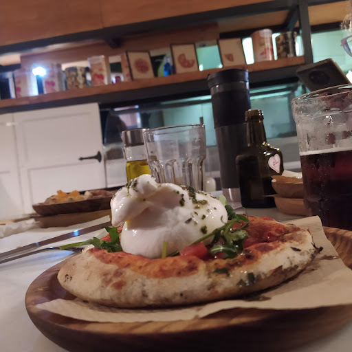 Read moreThis place is amazing! Really cosy bar that serves amazing drinks and pizzas. We waited for a bit to get seated but you can order drinks for while you wait outside. Great atmosphere when you go in. There is a menu on the wall of what drinks & pizza you can order in English. Order the “Surprise Pizza”. It is different every time you order it and they’re all so so good. So if you and friends order 3, they’ll all be different. Service on pizza isn’t the fastest but if you’re after fast service, you shouldn’t be here. This place is for enjoying drinks with friends, and chatting with great pizzas. You’ll be in no rush to leave :) Also had vegan pizza option.