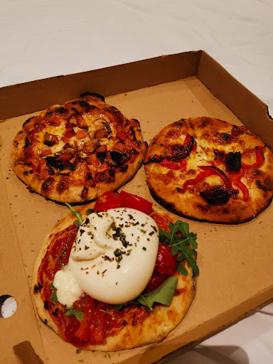 The guy who took our orders helped us with the choices since i don't eat fish, but sadly the pizzas we got where burnt (pepperoni where burnt Beyond recognition and the dough under the pizza aswell, this makes it bitter and not tasty at all) for specializing in making small pizzas with the concept "you get what you get" you can't or simply say you aren't allowed to fail since that is literally the whole portion.