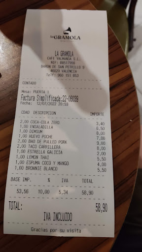 My friend and I went to La Gramola because we heard only good reviews about this place. Unfortunately it was far from a good experience. We had a reservation at 21:30. We arrived around 21:15 and we were seated, all good until now. We waited around 20-30 minutes just to ask for drinks and the menu, and if we didn’t go to ask them for it I think it would’ve taken even longer. After we ordered the drinks the lady said she will bring the menu but instead she just started to clean the restaurant and didn’t pay attention, we waited for around 30 minutes until we asked if we could have our drinks. She didn’t even say sorry for forgetting and then she asked the man to bring it to us. The man was really nice comparing to the lady, which couldn’t care less about the service. After that we finally got the menu and ordered. The food didn’t take that much to come but the waiting time was outrageous, we were really considering going to another place to have dinner. The food was tasty, we had the dum sum which were amazing, the bao which was good and the causa limena which was okay. We’ll definitely never come back because of the long...