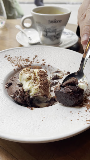 The waiting time for each dish was very decent. And we liked so much the ambiance, food very well presented. We enjoyed the taste and flavor of the salad; great portion for us to share. And then, the paella - we never tried Valenciana with snails before, so we thought that was interesting. We both liked the flavor of the Paella; one side note - the type of rice that they used was somehow not the usual quality and portion-wise smaller than we have tried. Yes, it’s a smaller portion than others - and we still enjoyed their Paella style. Then, we’ve got the cake with vanilla ice cream (perhaps quite pricey for a dessert) and coffee - all we can say is the perfect combination - everything compliments one another. Americano was amazing, the best so far americano we had in the city area, and we enjoyed the lava cake - not too sweet and just a nice portion for us to share.