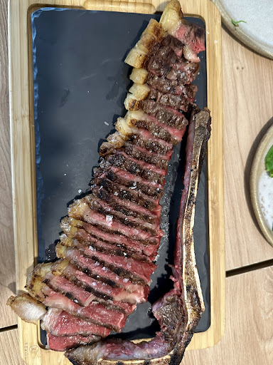 Read moreFuimos viernes mediodía. Pareja + niños 4 añitos. Al ser festivo NO hay menú y toca elegir todo de carta. 1er problema. NO hay nada para niños, ni menú ni ningún plato para niños, además de eso preguntamos si le podían hacer algo sencillo (tipo pechuga/lomo plancha con unas patatas) y la respuesta fue directamente NO, muy inexplicable. 2o problema buscamos los 2 platos más "adaptados" para el nano, bravas y milanesa y nos dicen que esos platos NO hay (dia festivo solo de carta y sin menú...ahí lo dejo). La carta queda muy limitada (a nuestros gustos y contando con 1 nano). quitando esas 2 opciones. Elegimos 3 entrantes y 1 principal a compartir. -1 berenjena napolitana: muy sabroso y bueno. -6 croquetas de jamón: muy sabrosas y cremosas, muy ricas. Eso sí del tamaño muy pequeño y el precio muy elevado por unidad. -1 ensaladilla con ventresca: sabor muy plano, aunque correcto. Solo 2 lomitos de ventresca, cantidad muy escasa. Plato PRINCIPAL (por falta de elección) Bifé. A compartir. En 2 piezas ( nos dicen el servicio que la pieza es muy grande y que la tienen que dividir en 2 trozos, un poco raro, ya que es a la brasa). 1 muy hecha (pedida así) y la otra al punto (el punto lo dejaron un pelín demasiado hecho). La carne muy buena de sabor y tierna. Acompañada con 2 patatas medio cocidas y luego a la plancha y con chimichurri (muy rico). Plato correcto aunque relación calidad-precio muy elevada. 85€/kilo. Solo el bife fueron 40e. Postre: torrija con helado. Cazuelita pequeña. Dentro un tipo de brioche (no era pan ni torrija en si misma) con un poco falta de dulzor y con una capa caramelizada, acompañado de helado de mantecado. No lo volvería a pedir. Sitio con relación calidad-precio demasiado alta. No nos gustó la falta de plato para niños, la falta de platos en carta (y el NO menú), ni la relación calidad-precio. NO...