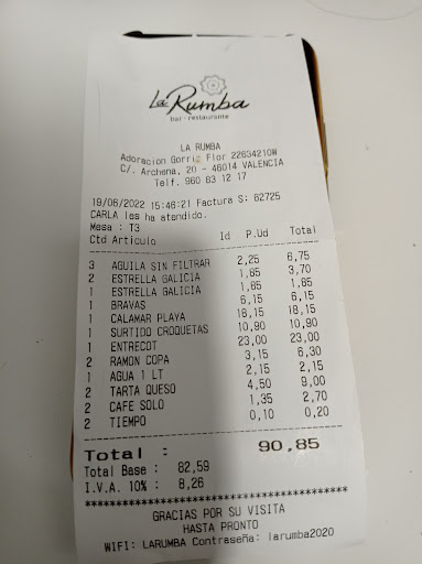 Read moreA ver hacia tiempo q no venia a este bar y la verdad esq quitando a la camarera Carla q es estupenda y una buena profesional pues si son todos los Domingos así no creo q vuelva. La cocina cerrada no tenían más q 4 cosas recalentado x las q no pienso pagar y 1 sola camarera para absolutamente todo vamos a ver señor dueño de la Rumba ,sabe q o debería saber q los esclavos ya no existen? En fin q no se como será entre semana pero desde luego el Domingo se lucio dele las gracias a la pobre camarera q aun estando como ya he dicho sola nos atendió rápido y perfecto.Jajajaj en respuesta a lo q me ha contestado para empezar yo no digo q no pueda estar 1 día cerrada la cocina x problemas pero se dice y ya está no tratas de meter sobras recalentadas y lo de q tratáis bien a vuestros empleados no lo dudo pero para mi tener el local lleno dentro y fuera y q se tenga q ocupar de todo 1 sola persona pues no se ahí lo dejo y x supuesto se muy bien de lo q hablo asiesq no sea tan irrespetuoso o se va a tener q comer...