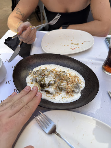 We ordered a bottle of cava, a paella pan for 2 person and some seafood as well. Unfortunately our table was so small that they put our bottle of cava to a different table and we had to get up, get the bottle and pour the drink to ourselfs every time we wanted to drink. The staff didnt even try to help. After, they served one of the dishes 25 minutes earlier than the paella, so we had to eat completely separately.