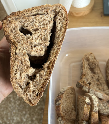 Ya no me pasa más veces, último pan 100% integral que compro porque es una lotería, hay veces que sale compacto y buenísimos, y muchas otras veces que sale completamente hueco, una estafa de pan. Llevo años comprándolo, desencantándome, y no es que lo regalen. A mi no me importa pagar un buen dinero por un pan cuando lo vale, lo que sí me importa es que me tomen el pelo de este modo.