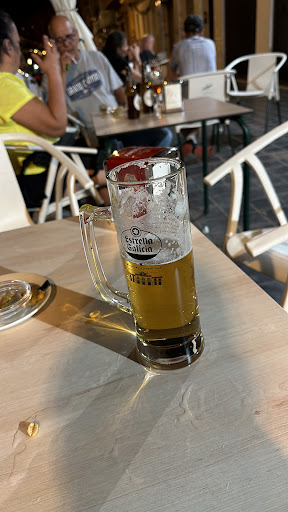 Para acompañar las tapas, opté por una cerveza bien fría, que según las opiniones de otros clientes, es una de las más frías de la ciudad. La combinación de las tapas con la bebida resultó perfecta para una tarde soleada en la terraza.