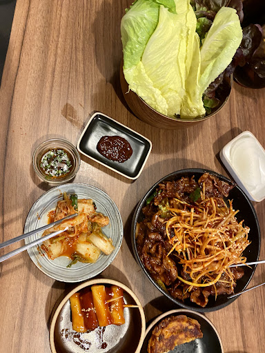 Había encontrado este sitio por redes sociales, así que sabía el concepto que trabajaban y moría de ganas por probarlo, igualmente Raúl nos orientó y aconsejó en cuanto a cantidades y tipos de preparaciones, lo cual fue todo un acierto porque nos quedamos bien satisfechas. Me encantó el detalle de los palillos de metal, ya que es lo típico en Corea!! Comimos 4 amigas por 50€ y disfrutamos muchísimo de todos sus platos a compartir: