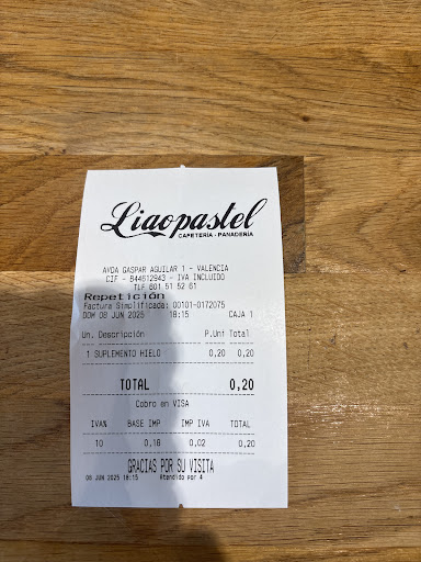 Read moreLiao Pastel, cadena de cafeterias propiedad de Xiao Liao, de origen chino. El lugar en si es agradable, una cafetería bonita, limpia y cómoda donde tomarte un café o quedarte un rato a trabajar o a pasar el rato. Los productos de panadería y pastelería están ricos, pero no son artesanales como anuncian, ni se le acerca. El problema viene de dentro, en primer lugar, el sitio es demasiado grande para el poco personal que tiene, las chicas hacen bien su trabajo pero están completamente sobrepasadas, las colas de espera para pagar son demasiado largas porque no dan a basto. Los precios de las vitrinas son engañosos, no está todo etiquetado, ponen diferente variedad de un mismo tipo de producto, pero solo marcan el coste del más barato, por lo que en la caja llega la sorpresa, y ya te lo han servido, así que si dices que no lo quieres, lo devuelven a la vitrina a pesar de haberlo calentado ya o haberlo metido en la bolsa de papel. Esto tampoco es culpa de las camareras, el dueño lo sabe perfectamente, es su "estrategia de marketing". A propósito del dueño, comentar que da muy mala imagen cuando está presente en el comercio y permanece sentado sin mover un dedo mientras sus trabajadoras hacen lo que pueden y la cola sigue creciendo, cuando se dirige a ellas las trata con condescendencia delante de los clientes. Recomendaría el sitio pero no lo haré por no promover este tipo de empresarios. Engaño al consumidor en precio y origen de los productos (no son artesanales) y mal trato hacía...