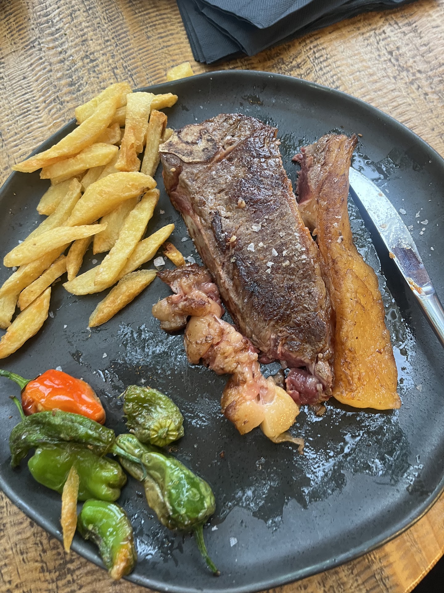 The food was subpar especially for the price. €7.90 for the most basic patatas bravas, €10 for 4 cold unseasoned meatballs, the croquettes were ok. The steak we ordered was €25 and was ridiculously fatty. I like fat on my steak but it was unrendered blubber. We were not given the correct knife to eat it with. We asked for medium rare and it was raw on the inside. We sent it back and when it came back to us after 10 minutes it was properly cooked to be fair. It is a nice looking restaurant but we were placed outside, there seemed to be a magician roaming around inside doing card tricks, I personally find this weird, if he had come to our table I would be uncomfortable, but to each their own I guess. The outdoor table we were sat at was not cleaned before we sat, it was wet and had a puddle on it and was not cleaned at any point we were there. €63 for a meal for 2 (all food items mentioned plus 2 soft drinks) with no alcohol, worst use of €63 I have ever had. Avoid it and go literally anywhere else, I don’t know how it has gotten 4.5...