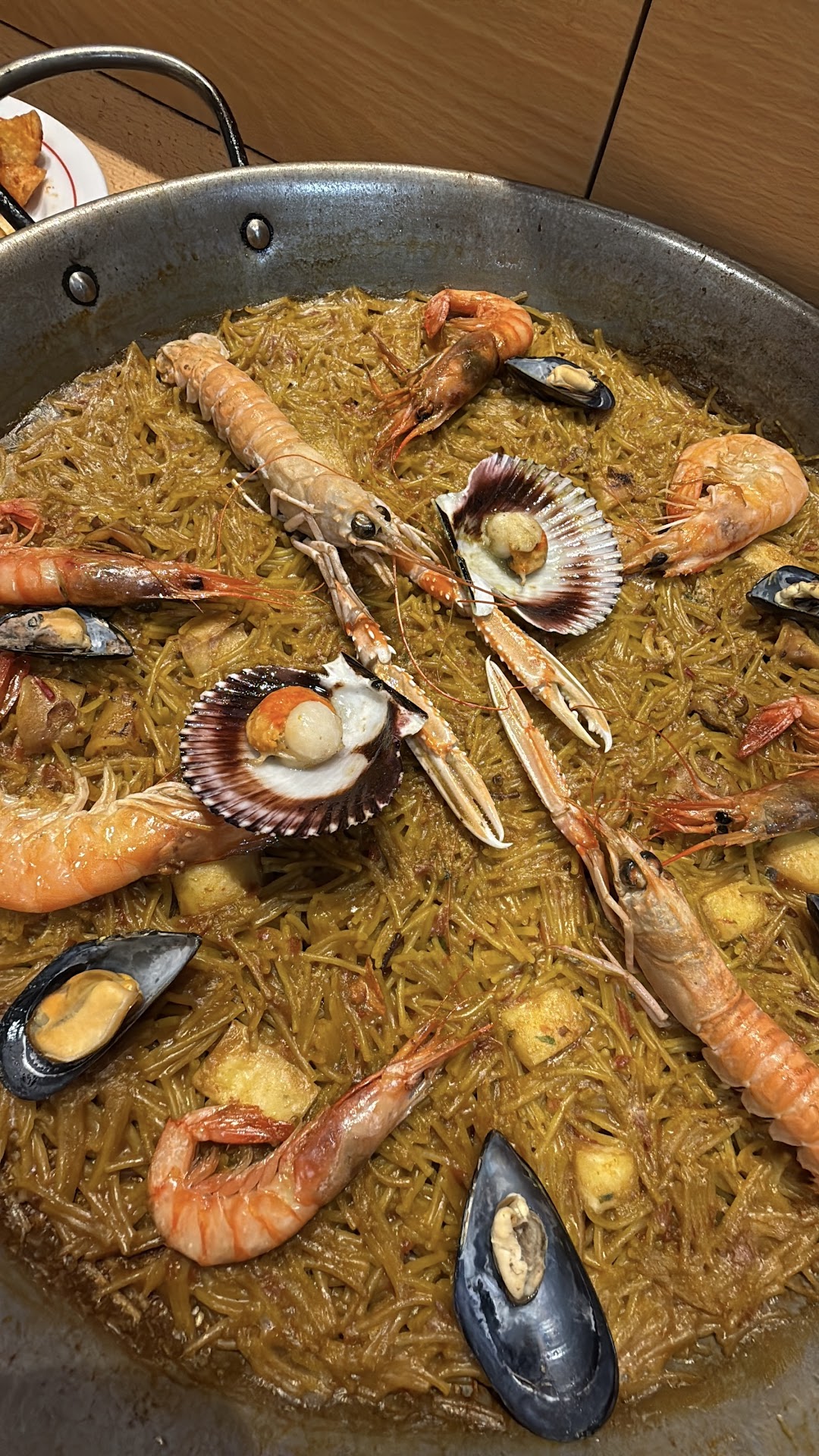 The worst part is —- They also messed up our orders. We ordered paella, but they gave us fideua. It was only when we called their attention that they admitted, “Oh yes sorry we messed up”. They offered to give us free dessert, but at that point we were already so full. When we brought up how disappointed we were they suddenly said they couldn’t understand English???? They didn’t charge us for the drinks; but it would’ve been better if they didn’t charge us anymore for the fideua since we didn’t order that, but they still charged us 20€+ for something we didn’t order.