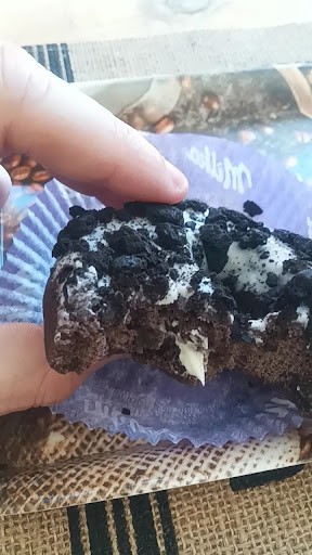 Tienen Donuts rellenos: de Oreo, de Milka. Me pedí el de Oreo, se notaba industrial, pero era correcto, estaba tierno y suave. Por fuera iba bañado y decorado con trocitos. Por dentro iba relleno. Cuesta 1,60€ y tiene un tamaño mediano.