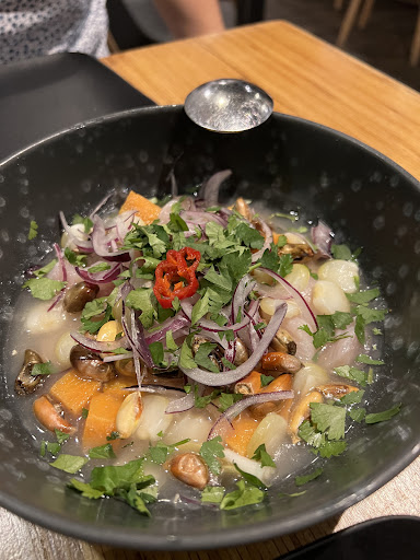 Traditional ceviche - Sour but oddly sweet with the melding of flavors. The white fish over a bed of red onions, giant corn, fried corn kernels and more. It was our first dish and unforgettable. Gyoza - shrimp and GOUDA cheese over a bed of yellow curry with some fried soft shell crabs (this is an absolute MUST have here) Usuzukuri Hamachi - Hamachi sashimi with ponzu sauce and truffles. It tastes exactly as described. Delicious as an in-between palate cleanser. Gindara no miso yaki - Light pieces of bok Choy with delicately cooked pieces of fish over a savory yet sweet miso sauce. A beautifully cooked dish that satisfied my taste buds without making me feel overly heavy. Pulpo anticuchero - sounded weird when reading the description but oh my gosh an astounding dish with a really nice smoked flavor that will blow your taste buds away Flamed scallops - Fresh, lightly torched scallops over a bed of avocado poblano sauce. I could honestly go without this dish because I was so satisfied with everything else. But if you still have room in your stomach…