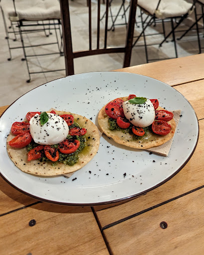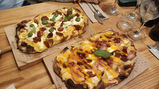 Read moreThe pizza crust was light, well proofed, salted and baked, even burnt in spots, and perfectly delicious. The tomato sauce was acidic and the Asiago finish a nice, salty addition. If we had only the pizza, this would be a 5 star review. But the salmon crepes was way too salty and nobody could recognize a crepes on that plate, while the whole dish had the consistency of mashed potatoes. The Caserecce Alla Norma was a complete failure. The pasta had no bite, was mushy on the outside and doughy in the middle. Not sure if the pasta had been sitting in lukewarm water for too long, but we couldn't eat them. Wow! What a disappointment from a place with a 4.9 star rating. 3 stars to give them the benefit...