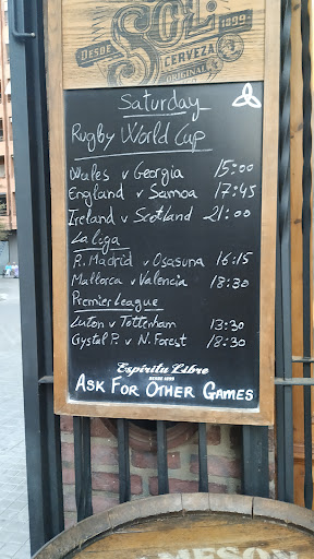 Read moreNot a tacky Irish bar. Drink prices grand. Quite small. Serves food though nothing vegetarian other than patatas bravas. Shows sports. The waiter who served us was friendly however the other waiter/manager was not. He was allocating people seats and we couldn't choose where we wanted to sit. I understand the bar is not massive however he made a number of people move table saying that there were not enough of them (2) to warrant a bigger table yet let one person sit at the same bigger table by themself. Would have received 4 stars if...