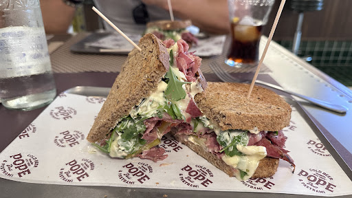 Read morePrimero lo que me gustó es la calidad del pastrami está muy bien. El kepab me parece ingenioso y muy delicioso, suave y el dejo de curry es un acierto total y recomiendo!! y los boniatos estaban crocantes y bien servidos. Casi perfectos. Me pedí el sándwich de Pastrami para pedir lo más clásico. Conozco bien los Delis de nueva York y siempre el error más común en este tipo de adaptaciones es la cantidad de pastrami y el tipo de corte. Este es de corte fino ( soy más fan del grueso a lo Katz) pero siempre a nivel cantidad debería tener el doble para estar a la altura de los originales más si es el sándwich signature y es el más caro de la carta. De sabor está bien pero el pan es muy de centeno para mi gusto y no está tostado con mantequilla lo cual invade el sabor de una manera que ayuda a suavizar en los originales. Aquí usan un pan más negro y eso le quita parte del encanto al estar tostado es más duro. En el pastrami el pan nunca llega al tostado pleno y si está tostado es con mantequilla.Pero es correcto y los ingredientes son frescos. La ambientación me parece a nivel diseño un poco tibio siendo una mezcla de diseño típico de bar de ahora con un toque retro Mezclado con fast food. Para mi habría que haberse ido más a lo retro adoptando mucho más detalles de los Delis antiguos y dándole más carácter y personalidad . Como que está a medio camino pero tampoco está mal solo que para mí le falta calidez y detallismo siendo que los Delis tienen mil detalles pequeños que invitan a comer. pero esto lo digo desde una base ya muy sólida como la que tienen y muy a gusto personal. Los demás sandwiches no están muy a la vista como tal en el local y no hay nada que invita a probarlos y eso debería exponerse más. tampoco está explícito pese a tener un congelador expositor las otras maravillas que pueden ofrecer.y no los vi en la carta y tampoco en la pizarra. En general todo está muy bien y la idea está buena solo que para mí tiene que ser todo aún más abundante con más cantidad de producto estrella ya que es bueno y para resaltar entre tanta competencia tienen que ser un poco mas espectacular para superar la expectativa ...igual recomiendo si sos fan del pastrami!!! Y me alegra mucho que haya un lugar que le da valor al pastrami! Como producto ya que soy ultra fan Y en Valencia!!....