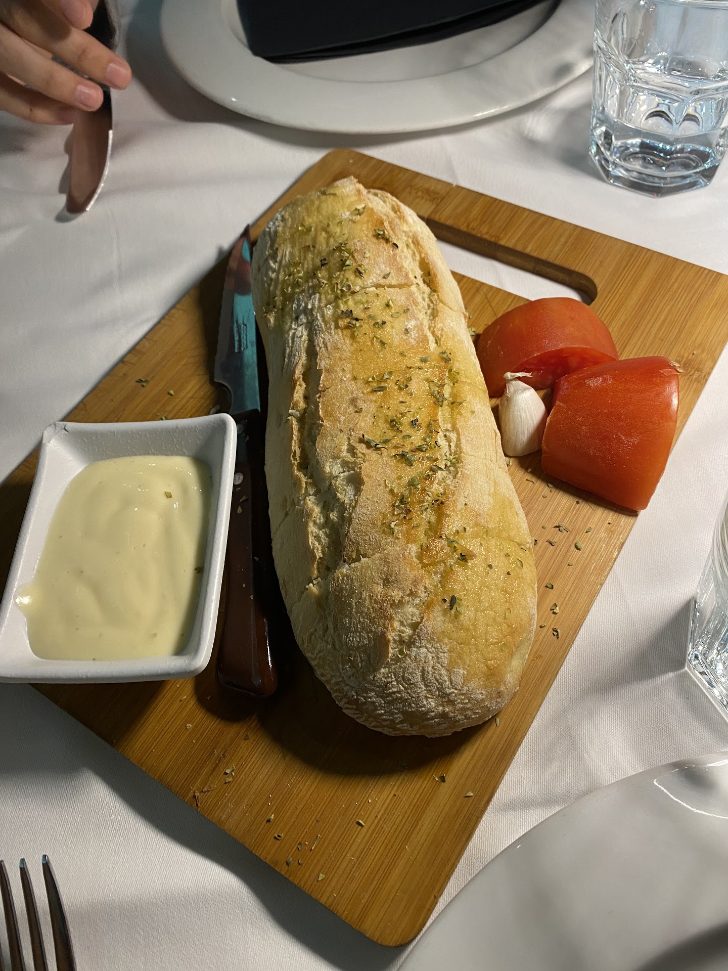 We arrived here around 19h00 (7pm). We thought it was closed but they were actually open. The waiter spoke English but I tried to speak Spanish as much as possible. The decor is clean and lovely. The menus were on wooden blocks. They offered tapas, starters, salads, main dishes, desserts, and a wine list. To be honest, I wanted to try the patatas bravas since I've seen it on the menu during my internet research. My partner ordered the tuna tartar. He also picked out a very good bottle of wine. And naturally we ordered the paella valanciana.