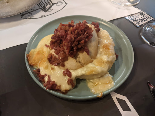 We had: Mac and cheese 10/10 (perfect pasta, great presentation, not too much cheese, but plenty of it) Tarriflette with gorgonzola 8/10 - possibly we picked the wrong cheese, but still great. Panmenteros - italiano (recommendation made by the staff) 10/10. Unbelievable, very very good.