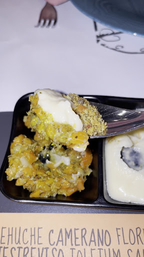 Read moreComo pega nombraría que a las mesas con banco como asiento deberían de ponerles un cojincito, se hace incómodo. Quitando ese pequeño detalle, pedimos el menú evolución, 35€ y hay más que suficiente comida para comer muy bien dos personas. Es un poco confuso cómo está explicado en la carta de la web, ya que parece que el precio sea por persona y en total vaya a costarte 70€ y tampoco específica que 1 menú sea suficiente para compartir 2 personas, yo creo que deberían aclararlo en la carta, tanto nosotros como las mesas de alrededor tuvimos esa confusión. Esto no es un inconveniente, pero pueden perder clientes que no quieran salir a 70€ la cuenta... La tabla de quesos destacamos el queso azul, aunque sea un sabor muy potente, vale la pena probarlo, aunque te avisan de que es de sabor fuerte, a nosotros nos ha gustado, yo tenía que combinarlo con otros para rebajar intensidad pero no me arrepiento de haberlo escogido. La croqueta, no es una croqueta, es una bandeja de tres huequitos en donde una lleva en nuestro caso el jamón a taquitos, en otra la bechamel y en la tercera el pan rallado. Entonces con el cubierto, cojes del 1, del 2 y del 3, y así mezclado te lo comes. Está bueno, si, sería algo que pediría si no estuviera en menú y pidiera a la carta, no. Como 3° pedimos el especial de provolone, queso fundido, tomate y tomates cherrys, buenísimo!!! Cero aceitoso, y se podía consumir perfectamente sin llevarte medio cuenco de queso detrás. Y los tomates súper gustosos. A estas alturas ya estábamos prácticamente llenos porque con las croquetas de construidas nos sirvieron 3 panecillos calentitos de sabores, cebolla, aceitunas y tomate. Además con el provolone nos trajeron otra cesta de pan crujiente de semillas. Ahora toca el turno del panmentero, elegimos por recomendación del camarero, el de burrata. Una gran burrata deliciosa, Gouda de lavanda, panceta ibérica. Todo ello coronado con un buen chorro de miel de flores. Realmente un gran placer de plato. Al tener el menú evolución podías escoger cualquier postre de la carta, menos la tarta de queso azul que no nos avisaron al sentarnos de que no tenían, un detalle que habríamos agradecido saber porque quién sabe si hubiéramos elegido otro menú de haber sabido que no había ese postre. Le pedimos sugerencia al camarero y nos recomendó pedir el lingote, nos explicó que es una tarta de queso cremosa con café y caramelizada, detalle que en la carta no pone la descripción del lingote, no lo habría elegido solo por la foto, pero al saber sus ingredientes no tuvimos duda de pedirlo y acertamos totalmente porque la combinación de tarta de queso con café y caramelizada está muy buena!!! Estuvimos algunos minutos esperando si nos ofrecían café y chupito que está incluido sin coste ninguno pero no quisimos esperar mucho más y fuimos a pagar a la barra, tampoco ahí nos mencionó nada del chupito que sí podríamos haberlo tomado en un momentito, pero bueno son detalles que si nosotros no lo pedimos, sabiendo que está incluido, no podemos criticar que no se nos diga nada, pero si me lo ofreces me das mejor servicio de atención... En conclusión, buena cena, espectacular, servicio bueno, muy bueno, cosas a mejorar, si claro....