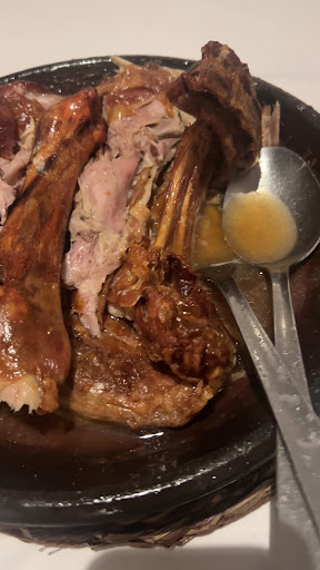 The lamb had remnants of the sticker on the leg bone still from its processor, slightly melted off.