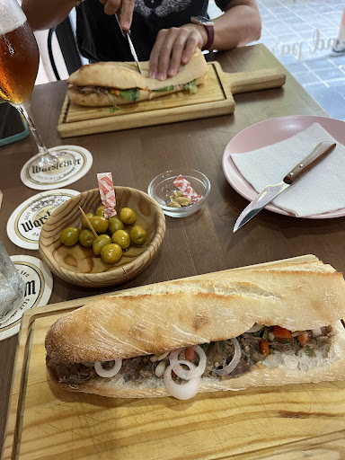 Read moreCAJON DESASTRE. Reservamos mesa para 7 (4 adultos y 3 niños). Decidimos por el local, al ver comentarios y el atractivo de su precio en la pagina web. Primera en toda la boca. Al llegar, los precios en carta, eran completamente distintos, obviamente al alza. Lo comentamos, y la respuesta es que las cartas era nuevas. ..... ..... lo dejamos en puntos suspensivos. Los niños deciden rápido, y ante la duda de qué manera vamos a cenar (tapeo en común, plato individual, etc) proponemos pedir para los niños y que vaya marchando. Nos comentan que no. Que todo junto. Pues bien. Al final, los niños comieron los últimos, y porque reclamamos sus platos. Nos sirven un poco de salchichón, cortesía de la casa (gracias), porque iba a ser la única que iban a tener 🤣. Pedimos 4 platos de tapas, y luego 3 bocadillos y una tosta. Las bravas: Las patatas estaban buenas. A trozos pequeñitos, y una salsa, que como ellos dicen, pica bastante, pero va a parte. Tamaño de ración, justita. Nos toca pedir aparte el all i oli (que por suerte no nos lo cobraron). Nachos: Muy buenos. La verdad. La carne muy buena sabor. Pico de gallo muy bien. Guacamole bueno. El queso muy buen toque. Y los nachos en si, muy buenos también. Tamaño de ración, cortita. Croquetas de plátano y bacon: Decepción. Super pequeñas. Mas pequeñas que una pelota de pinpon. Y solo se podía intuir el sabor a plátano, porque el de bacon se quedó en la plancha. Torreznos: Está claro que es un plato de moda, etc, y con ello, en TODOS LOS LADOS, se creen con derecho a cobrarlo a precio de oro. La ración era super pequeña. Rellenado el bol con unas pocas patatas fritas de bolsa para que no fuera tan descarado. Los torreznos, estaban normales. Pedimos 3 bocadillos a probar para 3, y la tosta para una persona solo. Nos cuesta decidir por el tercero, y al final nos decidimos por el "Po Boy", que al final fue un acierto. El pan estaba bastante bien, y lo considero una parte muy importante de los bocadillos. Los langostinos rebozados estaban buenos. La mezcla ok. El de "La potra", jugoso. La carne parecía como si fuera hamburguesa. Buen sabor y jugosa. El resto de la mezcla, bien. Y el "Paquito". Personalmente me cree buena espectativa, y me llevé chafon. Paraba bastante seco, y no se notó el sabor que debía para ser de cordero. Para beber fueron Franziscaner, a 4€ cada una...bueno. Tinto de verano, a 4€ también. Vaso con mucho hielo y pequeño. Me pareció una faltada. Y de primeras nos quería meter uno parecido que tienen en carta, a 8 euracos. Menos mal que mire la carta de bebidas, y me di cuenta del otro, a la mitad de precio. Refrescos y agua. El salón no estaba lleno, y nos pusieron justo encima de otra mesa, literalmente. Hasta el punto que tuvimos que mover las 3 mesas para tener algo de intimidad y no estar encima de ellos. Al final de la corrida, nos cobraron según carta de mesa, no la de internet, que obviamente era la más cara Terminamos con café, y pedimos 3 chupitos. Que de costumbre, siempre se suelen invitar. Pues bien. Ahí están. Cobrados. Se estiraron menos que el portero de un futbolín, y menos detalles que el salpicadero de un panda. Servicio un poco a tarambanas. Valoración general, 2 estrellitas. Nos fuimos con mal sabor. Comida, servicio y ambiente, 3 estrellitas, porque me sabe mal poner 2. Edito. P.D: Al final el tarrito pequeño de allí i oli, si...