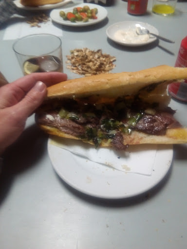Bocadillo de embutido, con alcachofas y pimientos verdes, y con allioli.