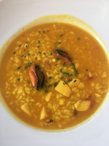 Drinks took quite a while to make but were nice. Croquetas de pollo were great, but the center was still a bit cold. Gamba's al ajillo tasted great, but most restaurants serve them fully peeled. Here we got them with the tail still on which I did not expect. I prefer "clean" dining. Or at least give me something to clean my hands. Main dish was the entrecote. It was served on a hot stone, beautiful. It had too little salt to my taste, and it came without condiments like salt, pepper or aioli. Tiramisu for dessert was perfect. Maybe the best tiramisu ever. Pro: the restaurant looks great and serves potentially good food. Con: you can have a great meal anywhere in Valencia for a lot less money. It is no problem to pay more, but I expect a higher level of cooking.