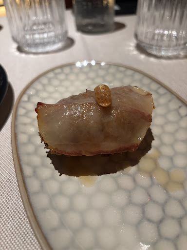 Desde el primer momento, el trato fue excepcional. Nada más cruzar la puerta, el personal nos mostró brevemente las instalaciones del restaurante, un espacio cálido e íntimo dividido en varias zonas con una decoración encantadora y cuidadosamente pensada. Tuvimos la fortuna de sentarnos en una de las áreas más agradables, donde el ambiente favorecía la conversación y el disfrute.