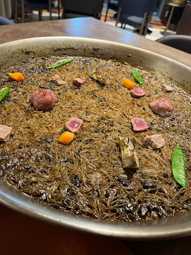 Muy flojo para lo que se espera de un restaurante así , reservamos mesa para 3 , después de un concierto , Después de más de media hora , conseguimos acceder al restaurante, no voy a contar todo lo que tuvimos que hacer para poder llegar a un restaurante que está en el mismo pabellón porque es bastante largo y complejo .Una odisea !!! Nos sientan , con las noches frescas que hacen ahora , EN LA TERRAZA !!!! Pero en la parte más hacia afuera , que , aunque está cubierta hacia bastante frío y mi mujer y mi hijo tuvieron que cenar con las chaquetas puestas , habían mesas más al interior pero esas se ve que son para otro tipo de clientes, porque creo que por lo que pude observar , y me dedico a la hostelería , es lo que hacen en este restaurante. Le preguntamos si había posibilidad de dentro ya que pensaríamos que la mesa sería dentro, y nos comentan que tienen un evento privado , pues lo podían decir a la hora de la reserva y ya el cliente decide si quiere terraza o para pasar frío se queda en casa .Estuvimos como 20 minutos allí sentados a la fresca , sin que ninguno de los numerosos camareros que habían dando vueltas , viniesen a preguntarnos , si por lo menos queríamos algo de beber , por fin , después de llamarlos aparecen , y nos toman notas de bebidas . La comida , muy floja , el precio muy elevado para la calidad que ofrecen , el brioche de steak , al steak le faltaba de todo , la carne picadita y poco más , el esgarraet solo llevaba pimiento el cual no tenía nada de sabor , la sepia tres mahonesas pasable pero tampoco para tirar cohetes , y el solomillo aceptable , pedimos por sugerencia de la persona que nos tomó nota , de guarnición patatas , ya que nos dijo que estaban riquísimas y bueno , patatas eran y normalitas , de hecho prácticamente se quedaron todas , y también pedimos mollejas que bueno tampoco fueron otra cosa del otro mundo , las he comido mucho mejores , postres ya no nos atrevimos a pedir ya que no estábamos disfrutando de la cena , por el frío y por lo que habíamos probado . Queríamos acercarnos algún día a comer y probar algún arroz pero no sé si le daremos otra oportunidad. Fue una pena porque íbamos con ganas de pasar un rato agradable en familia pero no fue así ,...