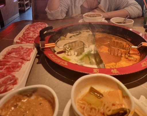 Really good authentic Chinese hotpot place for dinner. So authentic that the menu comes in Chinese and spanish. You order everything you want on a tablet and it then get processed and they start bringing the pot with broth and all the ingredients over. They also top up the pot with water as you eat so that you have enough broth for all your ingredients. We chose a “little spicy” and a mushroom broth. The little spicy turned out to be quite spicy so if you can’t handle spice, maybe take a non spicy one and then make a spicy sauce to dip your ingredients in. You also get a free desert at the end. Definitely recommended to come here for dinner on a cooler evening...