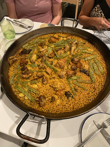 Fish croquettes were like a buttery mouse with a crispy exterior - just heavenly. Cod tomato ratatouille dish which tasted really homely and filling. Cream of vegetable soup with chives and oil garnish was so perfectly balanced and rich. My vegetable soup hating husband ate it greedily. The Paella was of course the star (and like a great biryani) you could taste the meat and it's slowly rendered oil on every grain of rice. We were too stuffed at the end of the meal and were told Valencians would save a Paella for the Sunday lunch. Makes sense, it is a great celebration of a regions culinary art. Well done Chef and entire hospitality team. Each course was served and cleared away so smoothly and efficiently, it was a dance performance and added to the ambiance. The elderly waiter who made a point to stop by our table and help us scrape the paella tray to get at the fried crispy and most flavoursome bites deserves a special mention. He's a...