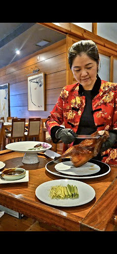 Por el precio de las bebidas ya se nota que está un poco subido del precio de un sitio de a pié. Como fuimos a comer pato, pues pedimos un pato para dos, compuesto de su consomé, tiras de piel con pepino, tortas, cebollinos y su salsa, y luego una especie de wok con verduras y la carne restante del pato.