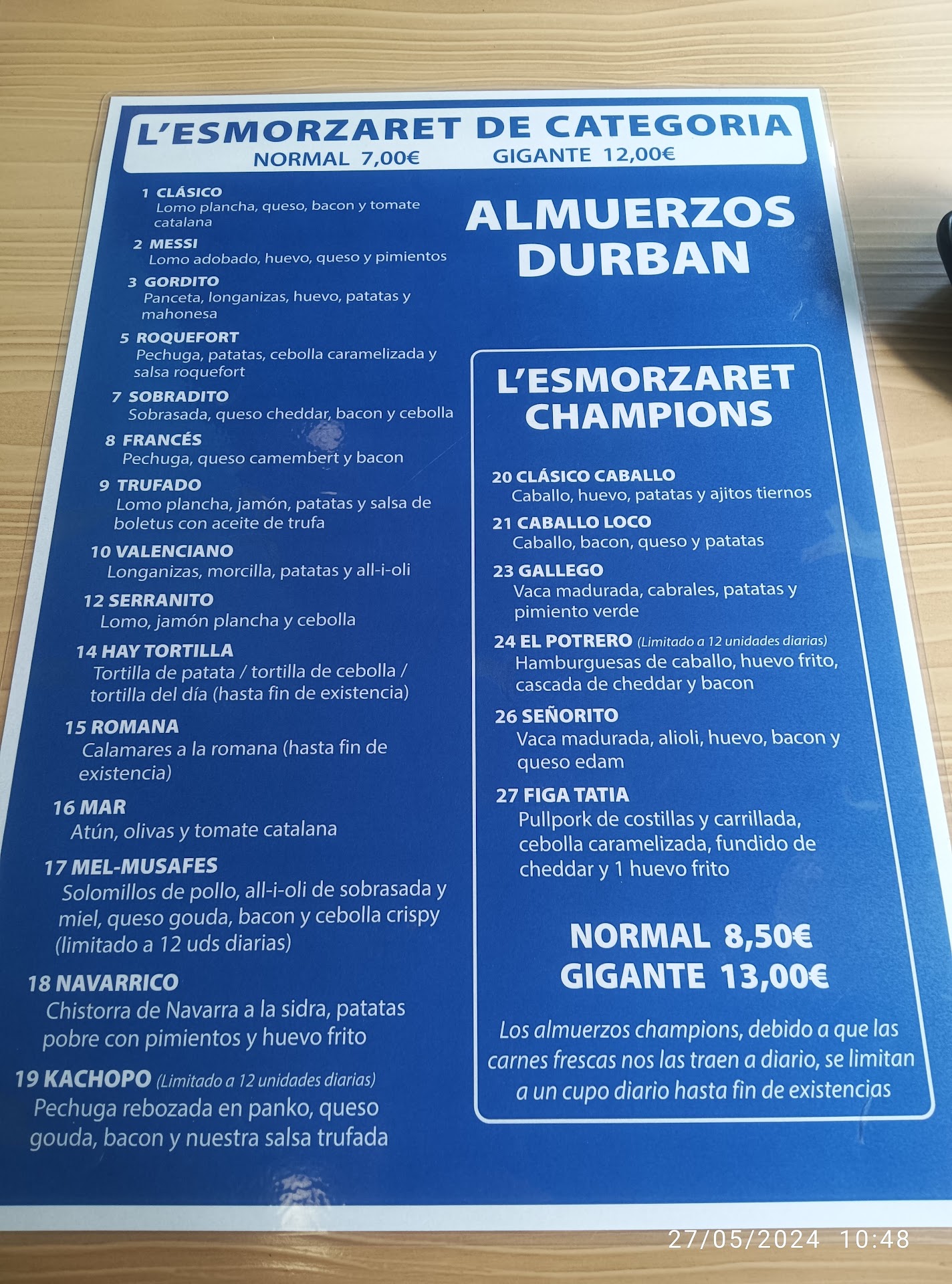 Read moreHoy fuimos almorzar previa reserva ya que era una cumpleaños y el mismo cumpleañero realizó la reserva el día de antes. (11Comensales) Yo entiendo que es un sitio al que va muchísima gente almorzar y que es un no parar de entrar y salir comensales(YO ME DEDIDO A LA HOSTELERÍA. TRABAJO EN IBIZA COMO RESPONSABLE DE BAR 8 AÑOS, PUEDO ASEGURAR QUE SE DE LO QUE HABLO Y PUEDO DECIR A CIENCIA CIERTA QUE HAGO MUUUUCHOS MÁS COMENSALES QUE ESTE LOCAL AL DÍA) Dicho esto y a lo que voy. Llegamos con reserva a las 10am todo bien, nos toman comanda de la bebida(empiezan los problemas) dejan a un comensal sin bebida la cual reclamamos 3 veces y aún así me ha tocado levantarme.. bueno. Llega la hora de comandar bocadillo..una de las comensales LITERAL le dice al camarero, te lo puedo pedir al gusto!? A lo que le responde que sin problema si tiene los ingredientes, bien.. le preguntamos si tiene ternera y nos dice claramente que SÍ, Valee todo bien. Cuando salen los bocadillos todo correcto, pero el “especial” resulta que no lleva ternera porque NO TIENEN. Otra camarera detrás de la barra le pregunta a la comensal que quien le ha dicho que hay ternera? A lo que contestamos que el camarero. OJO AHÍ.. nos mira “sorprendido”y dice que él nos ha dicho que no… (escucha.. ni tiempo ni ganas de inventarme si tienen ternera o no..)😪 a todo esto yo le había pedido(también a él)otra cerveza que tampoco llegó nunca,aah si, llegó porque tuve que levantarme de nuevo para volver a reclamar esa cerveza y terminar mi bocadillo. En fin.. ya el colmo de los colmos fue cuando también al mismo camarero le pedimos la cuenta (RECLAMANDO UNA BOTELLA DE AGUA TAMBIÉN PEDIDA COMO 4 VECES) nos dice sisi ahora la traigo , yo mira.. por escusarlo ya no sé si decía la botella o la cuenta el caso que para ser una mesa de 11 y estar justo delante de la barra(ha sido un servicio pésimo) aaaah y cuando le digo CARI al camarero (DESPUÉS DE HABERSELO DICHO PREVIAMENTE VARIAS VECES Y NO DECIRME NADA EN EL MOMENTO) encima me dice que le estoy faltando el respeto… (una temporadita trabajando de verdad y duro te aria falta para saber que es te falten el respeto de verdad) COSA QUE TAMBIÉN TE DIGO NO PASARÍA SI SE PUSIERA UN POQUITO MÁS DE GANA EN LO QUE SE HACE, SOY LA PRIMERA QUE DICE QUE SOMOS CAMAREROS Y NO SIRVIENTES PERO A LO MEJOR POR GENTE ASÍ ES QUE A VECES NOS TRATAN COMO NOS TRATAN) UNA LÁSTIMA PORQUE EL BOCADILLO ESTABA ESPECTACULAR. La mujer de la barra venga hacer cremaet y buen café y los cafés ahí.. sin que nadie se los lleve, las mesas sin recoger, la barra llena de vasos vacíos..en fin.. que podría escribir más cosas pero repito que me dedico a esto y me sabe muy mal tener que poner una reseña así. Es una pena que hayan tantos empleados y todxs quieran mandar y crean que lo saben hacer todo bien, de ahí esa mala gestión y esta mala experiencia. Si vuelvo en algún momento de mi vida….espero que hayan mejorado, tanto el servicio como el carácter. PD: una máquina la DORI que es de mi barrio de toda la vida y hacía pues eso.. más de 10 años que no la veía, no le he podido decir nada porque no estaba el horno para...