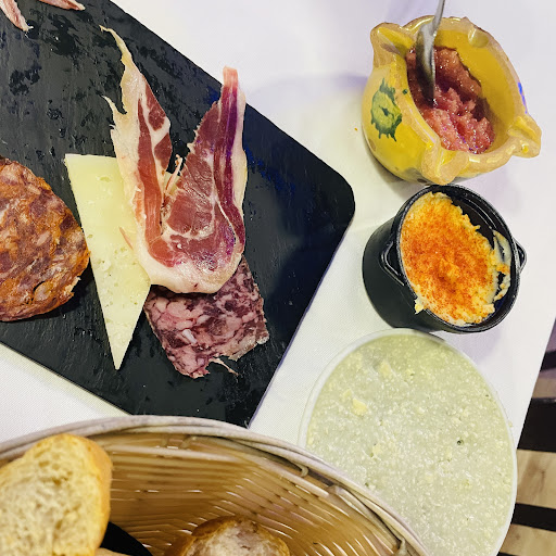 Read moreEl lugar tiene varios aspectos positivos. Es un lugar grande, los camareros son amables, hay bastante personal. El menú ha costado 25,50€ por persona. Es verdad que hemos comido mucho. Al principio decía qué raro cuánto plan. Hemos comido Demasiado. Han habido muchos platos, un plato ha sido fiambre que parecían ibéricos, a mí personalmente el queso no me ha gustado pero parecía que era bueno. Han puesto un mini mortero de tomate y ajo arriero y un queso azul, las tapitas de esto muy pequeñas, muy pequeñas, otro plato era anchoa con tomate (este si me ha gustado), otro morcilla con huevos, no estaba mal pero ya con el fiambre era demasiado, también ha habido un Foie que no me va mucho, sin el plato principal hubiera comido solo con las tapas. El plato principal arroz con bogavante para mi gusto no estaba meloso me ha resultado duro, supongo que va a dias y quizá le de una segunda oportunidad. El café del postre no me ha gustado, nos han puesto una coca de la abuela que estaba mala? No, pero tampoco buena. Para mi gusto, quitaría platos e innovaría con las tapas que son las típicas de una casa particular, que no están malas para nada pero me gustaría algo más especial. La otra cosa que agota comiendo es que hay un barullo importante con todas las mesas hablando a la vez y la decoración y luces Neón que no se como describir. Quizá si fuera bebedor con un poco de alcohol sería un 4/5 porque si bebes y comes y no miras más es un lugar ideal. Yo Me quedo con la amabilidad de los camareros pero no le pondría un 4/5 . Quizá a 15/16 euros si le daria un 4/5 pero a estos...