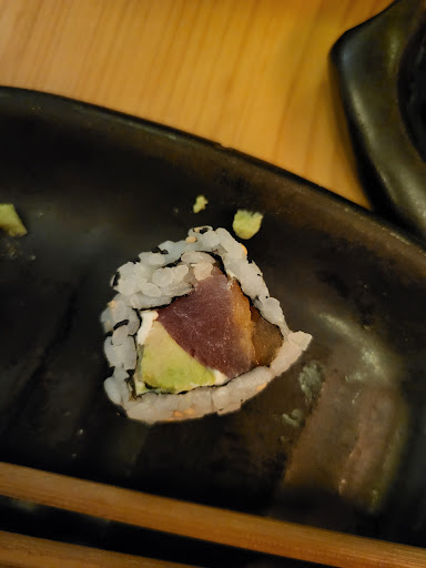 Regarding the food, the rice on both the uramaki and nigiri was undercooked, resulting in a dry and firm texture that affected the overall enjoyment of the sushi. Additionally, the quality of the fish seemed limited, and the use of mustard as a finishing touch on the eel nigiri was an unexpected choice that may not suit traditional sushi preferences.