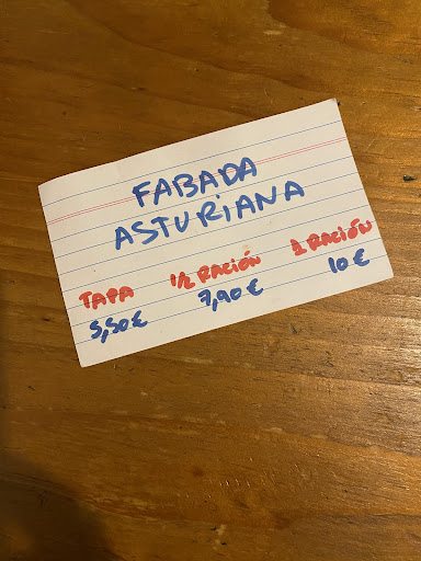 Nos encontramos el día de Reyes paseando por el Barrio del Carmen cuando algo llamó mi atención, un pequeño cartel escrito a mano donde se podía leer: "Hay fabada Asturiana".