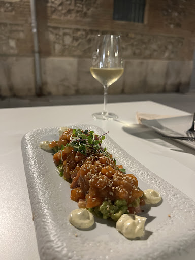 We pre-ordered the arroz del senyoret and it was amazing. Great flavour. Cooked very well. We asked for a recommendation of a bottle of wine and it was perfect. Exactly what we asked for, and I liked it so much I am buying it for my home. The gambòn al ajillo was very nice - great flavour, texture, and portion. The tartare de salmon was okay. Great flavour, but the quality of the salmon was not fresh, I think the tuna...